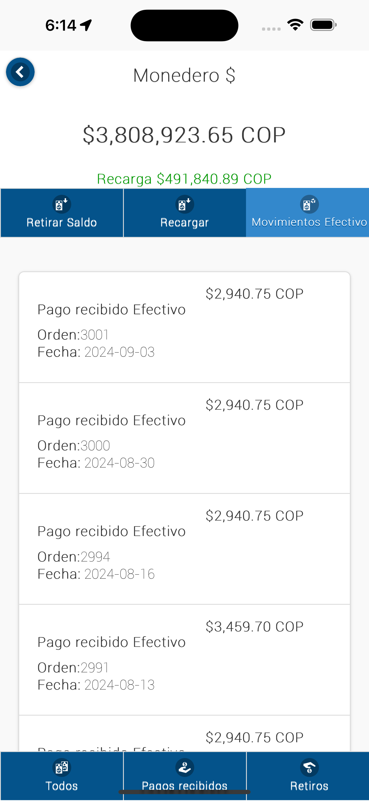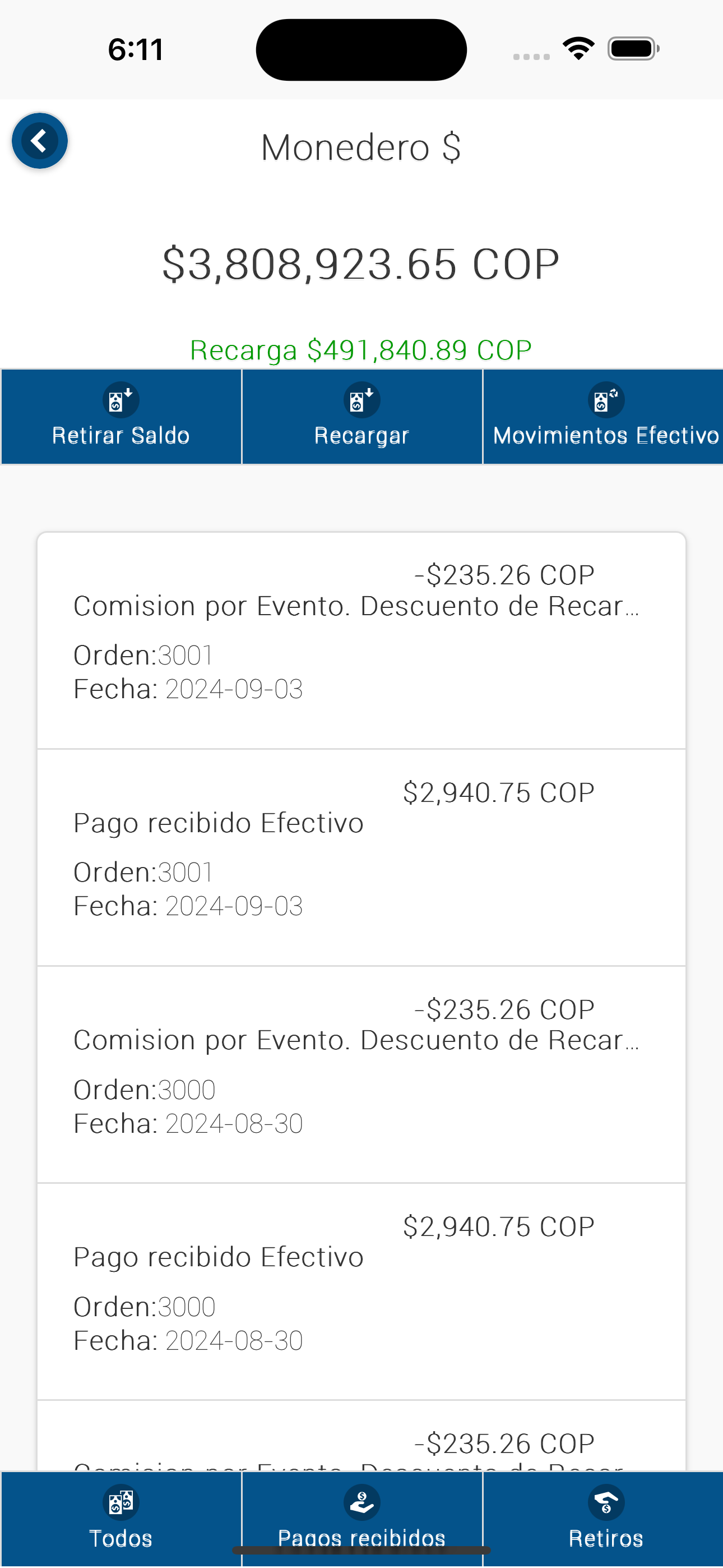 Aquí se pude ver únicamente los movimientos en Efectivo.